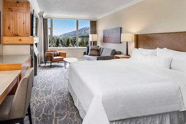 A flat-screen cable TV and a fireplace are included in all rooms at The Westin Resort and Spa, Whistler. A soaker bath tub is provided in every private bathroom. Mountain views are offered.